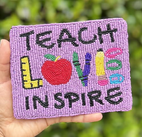 Click for More Images Perfect Teacher Gift: This 'Teach Love Inspire' beaded pouch makes a thoughtful gift for any teacher to hold small essentials like cash, cards, keys and lip balm.Durable Design: Made of quality cotton canvas and colorful...
