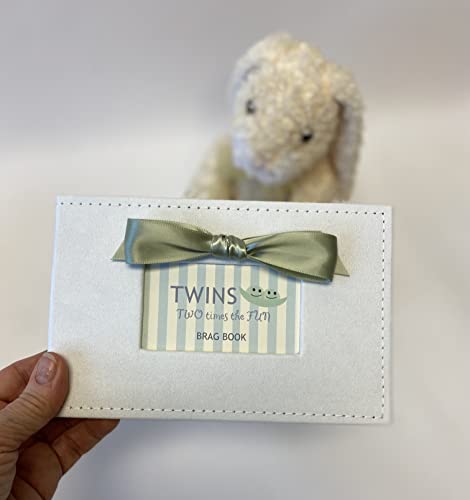 Click for More Images A sweet brag book for mom, dad or grandparents to show off their twins! With twins comes double the bragging rights for new parents and this gender neutral 5x7 white faux suede covered photo album is two times the hugs and...