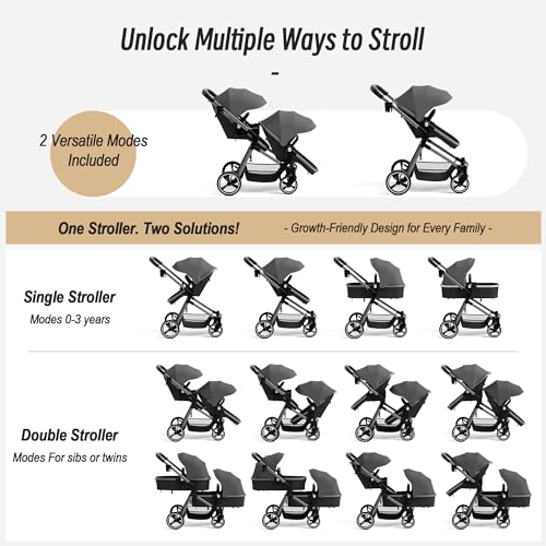 Click for More Images Double Stroller: Convertible double twin newborn stroller with front and rear seats that can be converted to a standing platform for ultimate convenience, accommodating newborns and infants up to 40 poundsSafety Harness:...