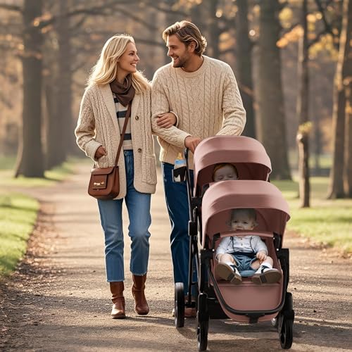 Click for More Images Convenient Double Seat Design: This double stroller is designed for both convenience and comfort, featuring two seats that allow your twins or siblings to sit together. Ideal for families with multiple children, it can...