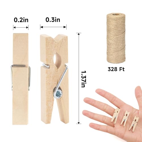 Click for More Images Brown Clothespins with Jute Twine - Package includes 100pcs of wooden photo clips, and 1pcs jute string, the size of the small wooden photo clips is 1.37 x 0.3 inches/3.5 x 0.7cm, and the size of the photo string is...