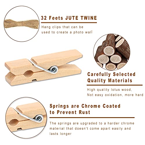 Click for More Images 🎁【Pacage&Size】--100 pcs tiny clothespins and 10M jute twine constitute the normative package.The size of the clothespins :1.5*0.3*0.4 in, and the minimum opening of the mii clothespins are about 0.8 in. It will be the...