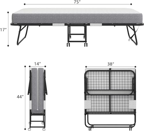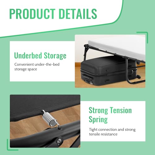 Click for More Images 【Folding Bed with Mattress】Our foldable bed is equipped with a 5-inch luxury comfortable mattress, which is filled with high-quality memory foam and high-density sponge, helping to relieve the pressure on the spine and...