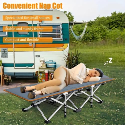 Click for More Images 【Compact & Portable – Perfect for Outdoors】This folding camping cot unfolds to 73.23''D*27.17''W*18.90''H and weighs just 17.73 lbs, making it easy to carry with the included storage bag. Ideal for camping, picnics, or...