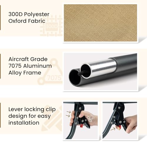 Click for More Images Steady and Heavy Duty: Thick high strength aircraft-grade aluminum frame and tear resistant nylon fabric enable the cot to support up to 330lbs. Wide plastic brackets on the rod keep the cot stable without wobbling even on...