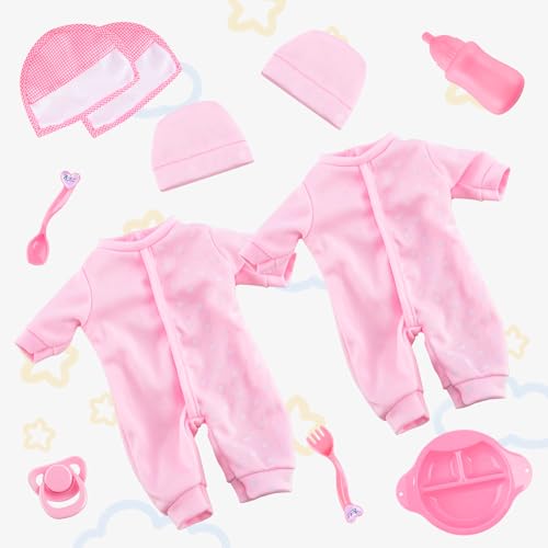 Click for More Images Twins Baby Doll Set: With 2 suits of outfits, 2 hats, 1 milk bottle and 1 pacifier, 1 bowl, 1 fork, 1 spoon, your lovely twins could dress up the baby dolls’ clothes as they like, as well as inspiring their imagination and...