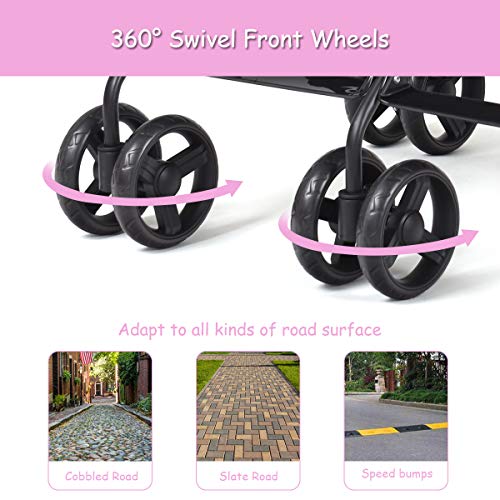 HOMGX Lightweight Double Stroller, Easy Fold Baby Stroller with 5-Point Safety Harness, Cup Holder, Compact Travel Stroller for Airplane, Pink